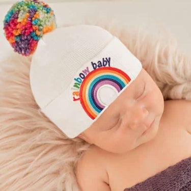 This very special newborn hospital hat is called our Rainbow Baby Hat. This beautiful hat represents a "Rainbow Baby" which is a baby born shortly after the loss of a previous baby due to miscarriage, stillbirth, or death in infancy. This term is given to these special rainbow babies because a rainbow typically follows a storm, giving us hope of what’s to come.
