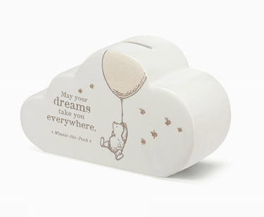 Winnie-the-Pooh and friends are here to brighten baby's days in brand new ways. Inspire sweet moments, celebrate important milestones and make together times cuddlier through classic artistry paired with warm, wonderful and whimsical Hundred Acre Wood wisdom you won't find anywhere else - such as with the May Your Dreams Take You Everywhere Bank!