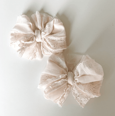 This adorable ruffled Piggy Set is a great accessory for your little girl. They are made of our popular ruffled fabric, attached to a metal clip, and backed with felt. Pig tails are a cute trend that can be worn for years with these unique In Awe ruffled clips.