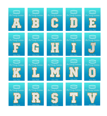 This is a new addition to the Mavi line! If you haven't seen these...they are all the rage! These will sell faster than you can stock them! These are individual white chenille letter patches. This is an assortment of 20 different letters. These are carded are ready to sell! Each letter measures approximately 2.5" tall. These are stickers and can be applied to almost any surface. They can also be sewn for a permanent application.
