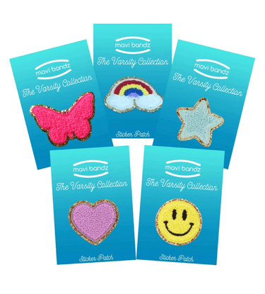 This is a new addition to the Mavi line! If you haven't seen these...they are all the rage! These will sell faster than you can stock them! These are individual chenille shape patches. This is an assortment of 20 patches. There are five different patches (you will receive 4 of each). These are carded are ready to sell! Each shape measures approximately 2" - 3" tall. These are stickers and can be applied to almost any surface. They can also be sewn for a permanent application.