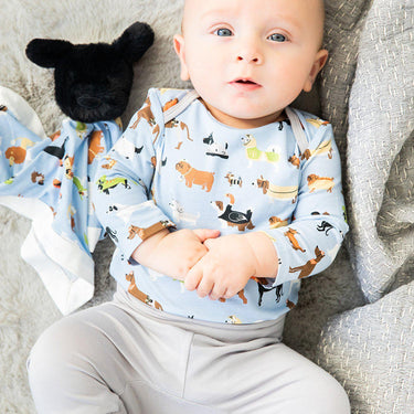 Our new bodysuit set gets baby dressed in seconds. Close two flaps (over/under) in seconds thanks to our hidden magnetic fasteners! Matching harem pants make it a complete outfit. Perfect for a day in or a trip outside, your little one will be comfortable and look great in any setting. Modal is certified as a 100% bio-based fabric by the US Department of Agriculture, responsibly farmed from Beechnut trees.
