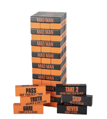 Build the tallest tower without yelling “TIMBER!” and get bragging rights for the next round with the Mad Man blocks.