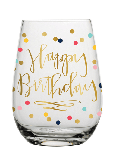 Celebrate special occasions in style with this cute and decorative stemless wine glass.