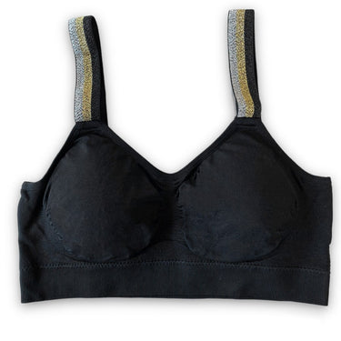The Metallic Tri Color strap is attached to our black bra