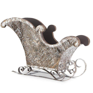 Elevate your holiday decor with the 10" Antiqued Metal and Wood Sleigh from K&K Interiors. This charming holiday accent piece effortlessly blends rustic charm with timeless elegance.
