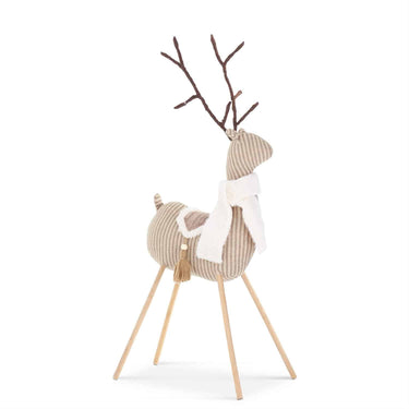 Crafted with meticulous attention to detail, this 26-inch tall fabric deer exudes a natural warmth and rustic elegance that embodies the spirit of the season. Its charming striped pattern adds a touch of cozy nostalgia, evoking the comfort and beauty of the holidays.