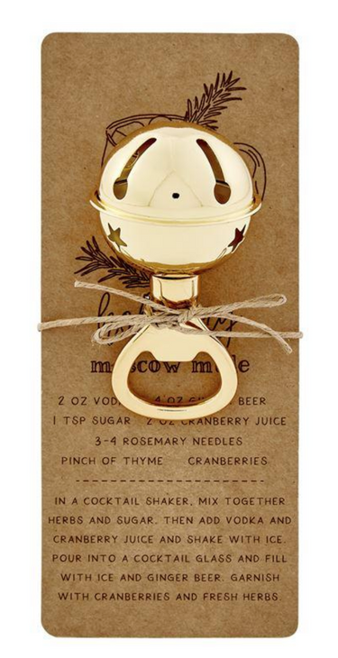 Add some festive flare to your holiday bar setup.  Jingle bell themed bar accessories come on a craft cocktail recipe card. Each sold separately.