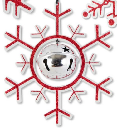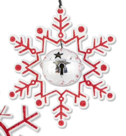 Crafted with meticulous attention to detail, these snowflake ornaments capture the essence of winter with their intricate designs and shimmering red accents. The addition of the jingle bell lends a touch of nostalgia and joy to your holiday decorations, as they softly chime with every gentle movement.