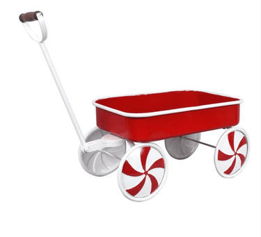 Red Metal Christmas Wagon with Peppermint Wheels
