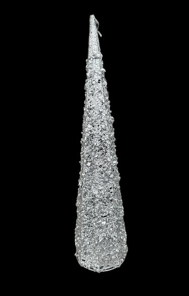 NOT A SET Introducing the Silver Wire Lace Cone Trees by K&K Interiors, a dazzling and enchanting addition to your holiday decor that will infuse your space with a touch of sophistication and sparkle. These exquisite cone trees come in three sizes: Small, Medium, and Large, offering versatility to suit your decorating needs. Crafted with meticulous attention to detail, these cone-shaped trees are adorned with delicate silver wire lace, creating a look that's both elegant and opulent. The gold and sparkly accents add a touch of glamour and twinkle to your holiday display, making them stand out as the perfect accents for your festive decor. Whether you choose the small, medium, or large size, these Wire Lace Cone Trees are more than just decorations; they are a celebration of the beauty and splendor of the season. Place them on your tabletop, mantel, or as part of your holiday centerpiece to create a chic and enchanting ambiance that captures the essence of the holidays. Enhance your holiday decor with the Silver Wire Lace Cone Trees by K&K Interiors, and let these dazzling trees bring a touch of elegance and radiance to your seasonal display. Celebrate the season with these timeless pieces that effortlessly blend sophistication and sparkle for a truly enchanting holiday experience.