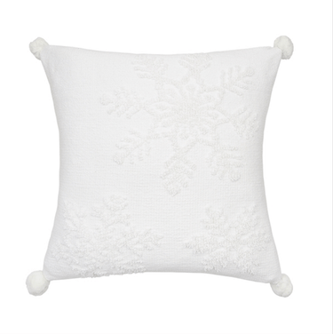With pom pom corner tassels and a tufted snowflake pattern on high-quality cotton, the White Snowflake Pillow is perfect for adding a sprinkle of holiday cheer to a bedroom or living room.