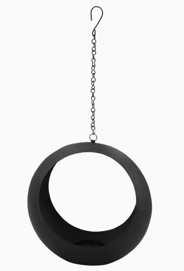 Add a modern, minimalist touch to your space with our Black Hanging Round Open Candle Holder. This sleek and stylish piece features a circular open design, perfect for showcasing a small candle or seasonal accents. Whether hung indoors or out, it brings a warm, ambient glow and a contemporary flair to any setting. A beautiful accent for any home decor style!