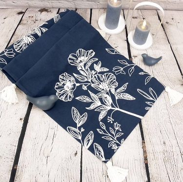Indigo & Wildflowers Embroidered Table Runner