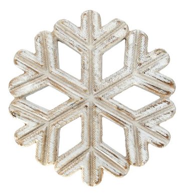 Add a touch of winter magic to your decor with this charming wooden snowflake. Featuring a detailed and intricate design, this snowflake has a distressed white finish that gives it a rustic, vintage feel. Perfect for mantels, shelves, or as part of a holiday centerpiece, it brings festive charm and seasonal spirit to any space.