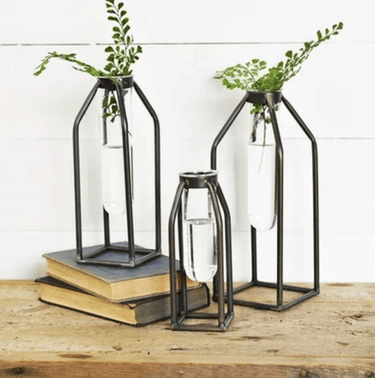 Introducing the Tin Tube Stem Holders by PD Home & Garden, available in three versatile sizes - small, medium, and large. These stem holders are a delightful blend of rustic charm and practicality, designed to enhance your floral arrangements and add a touch of vintage-inspired elegance to your home. Crafted with meticulous attention to detail, these holders feature a classic tin tube design that exudes a sense of nostalgia. Their cylindrical shape and sturdy construction make them perfect for displaying your favorite blooms, whether fresh-cut flowers from your garden or faux botanicals. The set's variety of sizes allows you to create stunning floral displays of varying heights, adding depth and dimension to your decor. Whether used as standalone pieces or grouped together, the Tin Tube Stem Holders effortlessly combine form and function, offering a stylish and stable base for your floral creativity. Choose from small, medium, or large to suit your space and floral arrangement needs, and let these stem holders infuse your home with the timeless allure of vintage design. Elevate your interior decor with these charming pieces that provide both beauty and practicality. Dimensions -4.25 X 4.25 X 11.75 (LARGE)