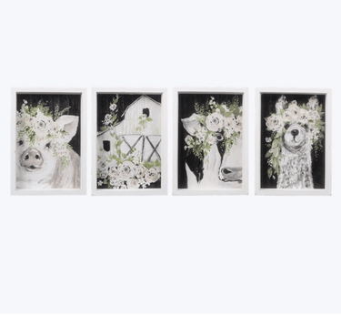 NOT A SET Introducing our Wood Framed Farm Art, 4 Assorted where artistry and functionality come together to beautifully display and preserve your most cherished memories. Our frames are meticulously crafted with attention to detail, ensuring a stunning presentation that enhances any photograph, artwork, or keepsake. We understand that your memories deserve to be showcased in the best possible way. That's why our frames are designed to complement a wide range of styles and aesthetics. Whether you prefer a sleek and modern frame, a rustic wooden design, or an ornate and decorative option, our collection offers a variety of choices to suit your personal taste and complement any interior décor. Dimensions: 5.75(L) 1.5(W) 8(H)