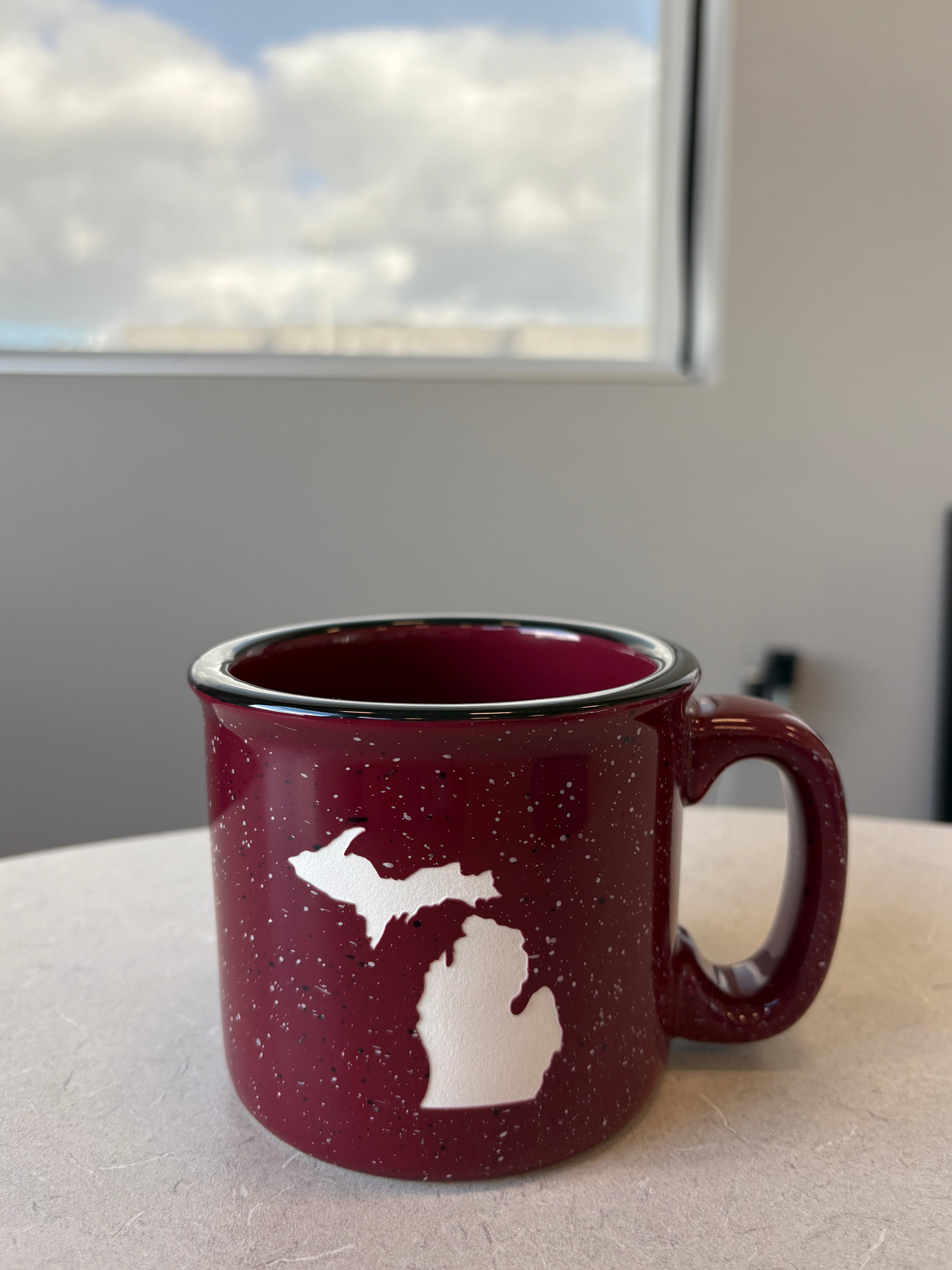 Michigan 15 oz Campfire Mug ( Burgundy or Ocean)