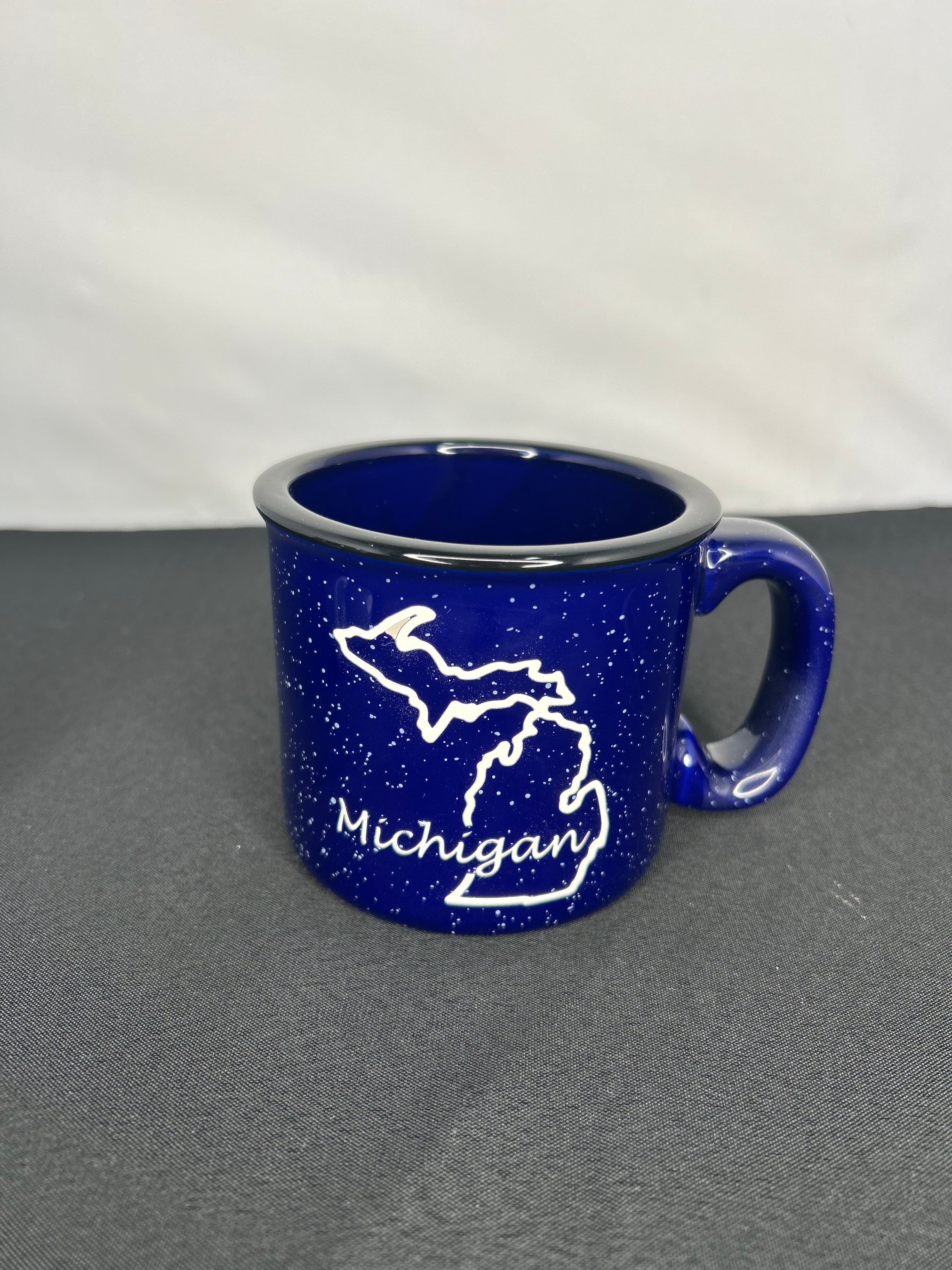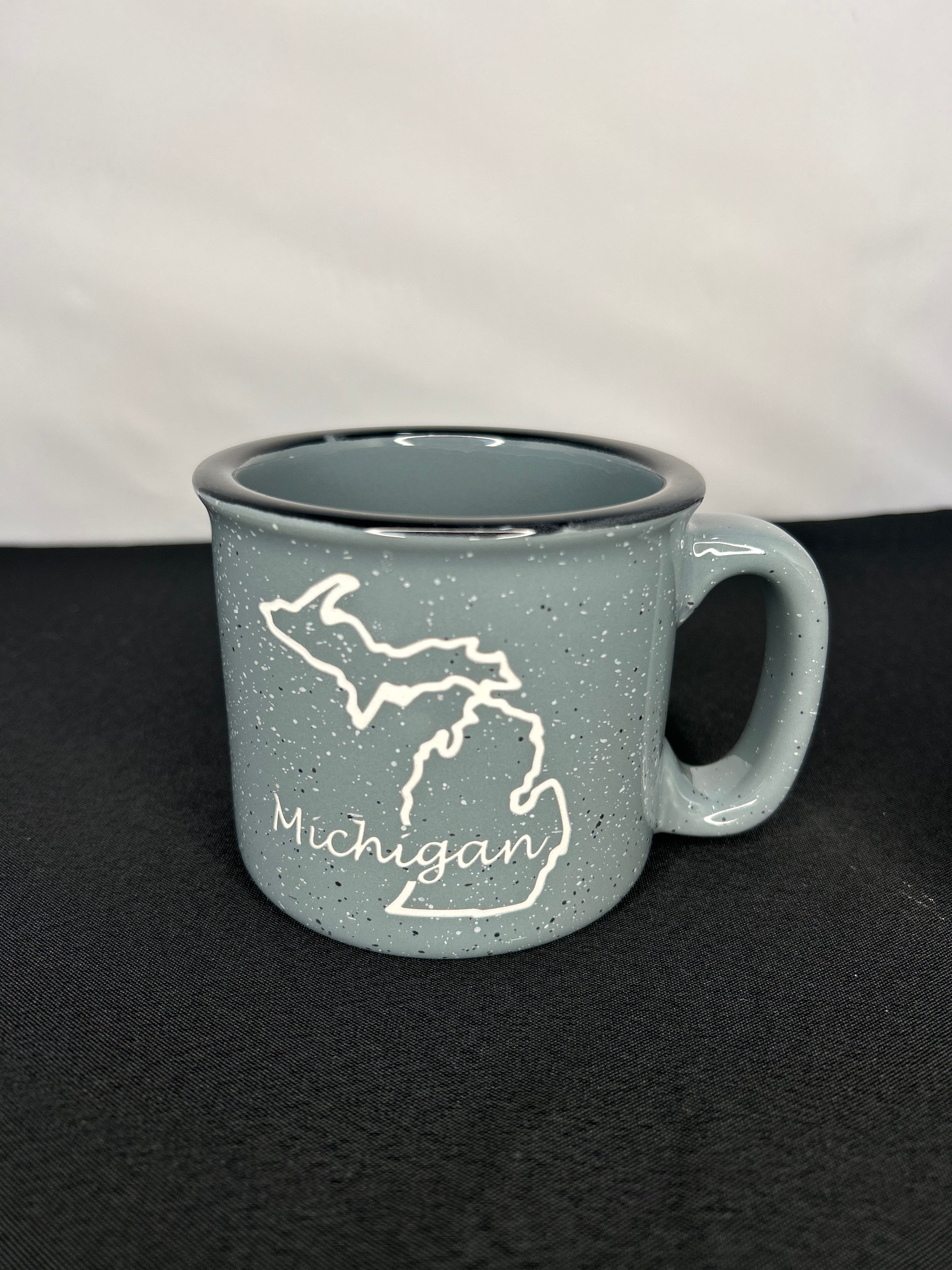 Michigan Outline 15 oz Campfire Mug (Dark Blue or Grey)