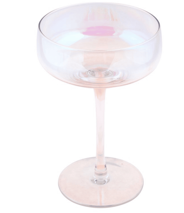 MID CENTURY CHAMPAGNE COUPE CLEAR LUSTER (F21) Our Mid Century Champagne coups are the most charming way to raise a glass in celebration. Toast to new friends, old memories, and many more exciting changes in life with these sparkling coups. Pour your favorite champagne over fresh berries or a bubbly non-alcoholic beverage into the clear luster or blush tall stemmed glass for a lovely way to drink together. Mid-century design. Mouth-blown and finished by hand