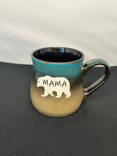 This is a 26 ounce El Grande Sandblasted Blue to tan or Beige to Brown rustic Mug with a Papa Bear or Mama Bear Design: The Papa Bear and Mama Bear design is sandblasted (cut) into the ceramic which means it is not only permanent but both dishwasher and microwave safe. No need to worry about the handle getting hot! I personally test all my mugs prior to purchase to ensure that each handle is cool when it comes out of the microwave. No two mugs are identical in this line so each mug is unique to itself. Don't limit yourself to thinking these are just for coffee! We use them for tea, hot chocolate, soup, chili, stews and the list goes on! These make fantastic ice cream or beer mugs as well as they can be chilled in the refrigerator for 30 minutes prior to serving! The design is only on one side of the mug!