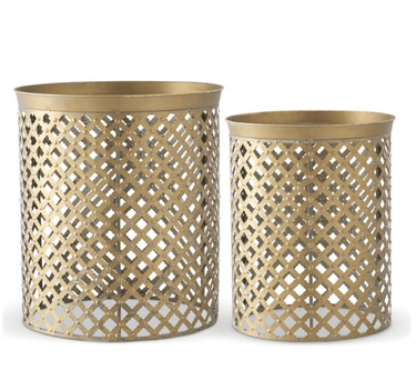 The Set of 2 Antiqued Brass Metal Lattice Cutout Nesting Tables by K&K Interiors is a sophisticated and versatile addition to your home decor. Crafted from high-quality metal with an antiqued brass finish, these nesting tables exude a sense of timeless elegance. The lattice cutout design on the tabletops adds a touch of intricate detail and visual interest, creating a captivating focal point. The set includes two tables of different sizes, allowing them to nest conveniently together for space-saving storage when not in use. Whether used as side tables in the living room, nightstands in the bedroom, or accent tables in the hallway, these nesting tables provide a stylish and functional surface for displaying decor, holding drinks, or keeping everyday essentials within reach. The antique brass finish adds a warm and luxurious touch to any room, complementing a wide range of interior styles. With their combination of beauty and practicality, the Set of 2 Antiqued Brass Metal Lattice Cutout Nesting Tables by K&K Interiors is a must-have for those seeking to elevate their living space with sophisticated charm.