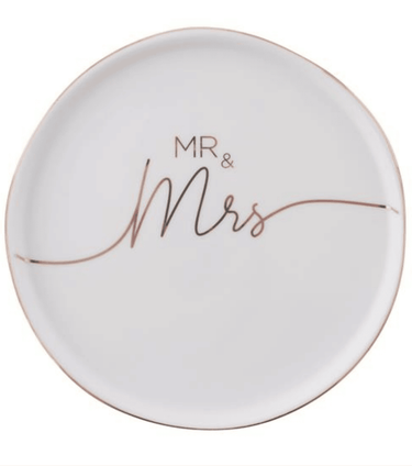 This white and gold trinket tray is the perfect gift for newlyweds!