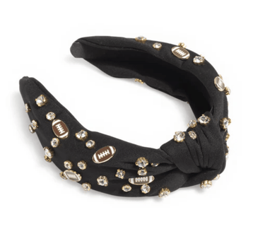 Add a feminine touch to your sports apparel with Shiraleah’s Game Day Charms Knotted Headband. With its chic black fabric background, the adorable rhinestones and football charms pop to show off your sporty spirit! This subtle accessory is sure to get the fans going at your next game day celebration. Pair with other items from Shiraleah’s Gameday Collection to complete your look!