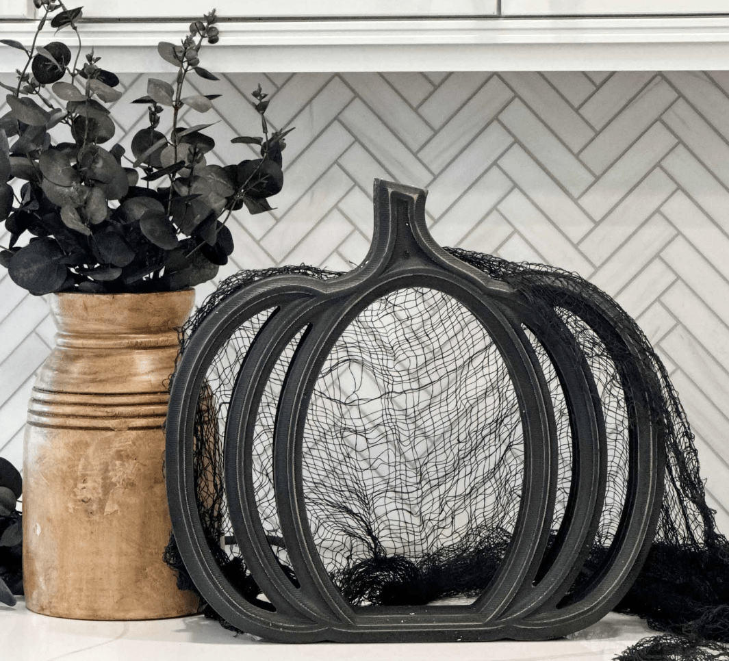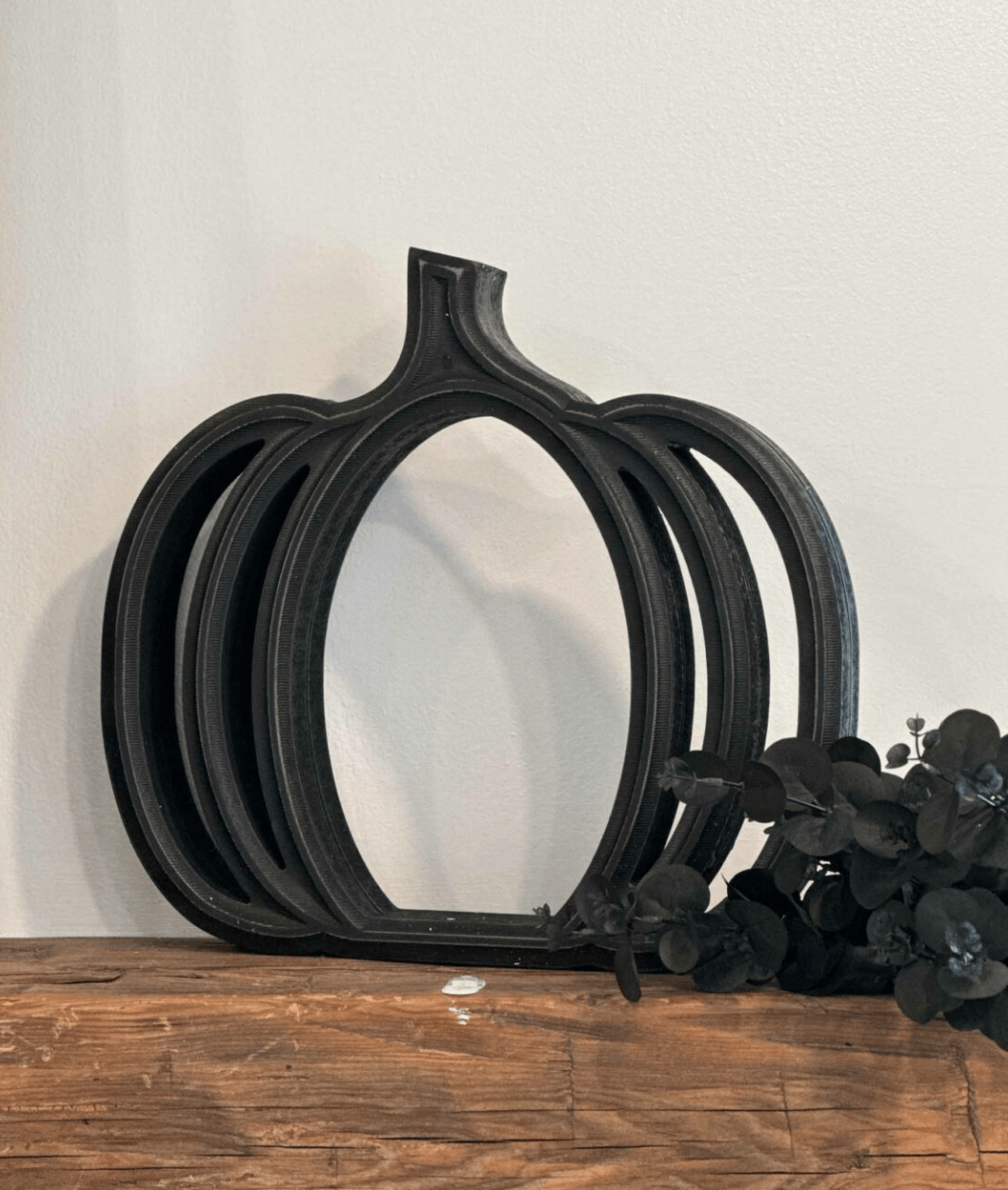 Stylish, unique and modern, this delightful Black Cutout Pumpkin Frame adds the perfect touch to your cottage or farmhouse this autumn. Designed with interesting details and rich, eye-catching tones, the bold accent can be displayed in countless ways, bringing a bit of unexpected drama and visual impact to every setting. With its substantial weight and ability to stand alone, the large pumpkin can easily be added to a classic fall display, featuring orange and black tones or incorporated into a creamy-white and black, contemporary fall design. Stand on a mantel with other spooky decor like Creepy Cloth or Black Eucalyptus (while supplies last) for an interesting haunted Halloween theme, or create a display on a shelf or console for the entire fall, with creamy white pumpkins and neutral fall botanicals and this simple yet striking accent.
