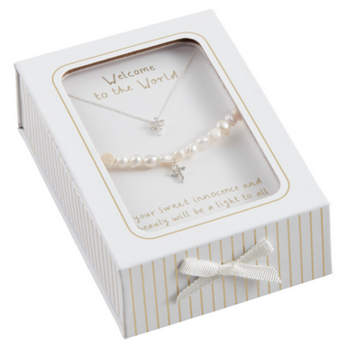 This elegant 2-piece set is a perfect blend of sophistication and charm, designed to add a touch of grace to any outfit. The boxed set includes a stunning pearl bead bracelet, beautifully adorned with a petite pavé cross charm that glistens with every movement. Complementing the bracelet is a coordinating pavé cross necklace, featuring a delicate chain that gracefully drapes around the neck. The bracelet boasts a comfortable 2-inch diameter, ensuring a perfect fit for most wrists, while the necklace offers a 7-inch drop, creating a flattering silhouette. Crafted with meticulous attention to detail, this set is ideal for both everyday wear and special occasions, making it a versatile addition to any jewelry collection. Whether you're treating yourself or gifting a loved one, this exquisite set is sure to be cherished for years to come.