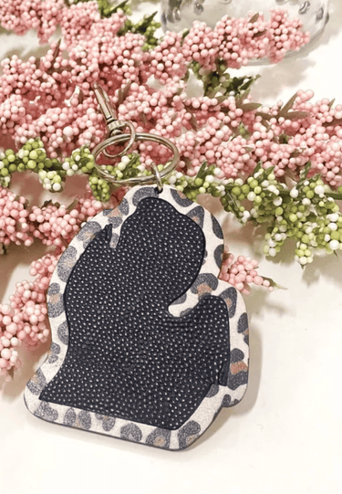 Michigan Leopard Wooden Keychain
