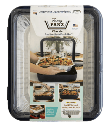 Fancy Panz is the answer to those flimsy, not so pretty foil pans! Enjoy all the conveniences to a foil pan and dress it up in a fancy Panz classic! No more grimy pans to scrub or dirty serving dish to bring home- just remove the foil pan and wipe down your fancy Panz!