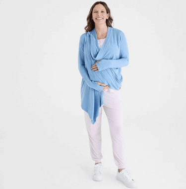 the do it all cardigan enhances your wardrobe with a piece that checks all the boxes, no matter your stage in life: at the office, out with friends, traveling, nursing or pumping, pregnant or not. innovative magnetic closures create a wrapped, cowl neck look and privacy when you need it. silky soft TENCEL™ modal is blended with french terry for a medium weight and luxurious feel that softly cocoons a growing belly, but also drapes beautifully if you’re not pregnant.