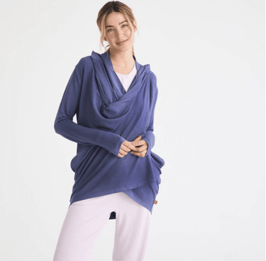 our women's do-it-all cardigan is made with innovative magnetic closures at the shoulder that enable privacy and comfort whether you're nursing, pumping, or traveling. silky soft modal is blended with french terry for a medium weight and luxurious feel. its roomy shape softly cocoons a growing belly, but also drapes beautifully if you’re not pregnant. when wrapped, it creates cowl neck effect.