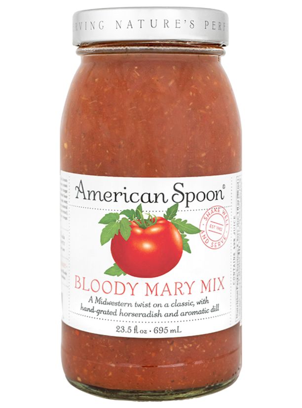 American Spoon Bloody Mary Mix is rich and spicy, with a hefty kick of hand grated horseradish and the deep, complex tang of tomatoes. Our thick, full-bodied version of this classic cocktail mix is rounded out by the fresh, herbaceous undertones of dill, making it the perfect companion at Sunday brunch and cocktail hour. Just add a splash of vodka to make the best Bloody Mary.