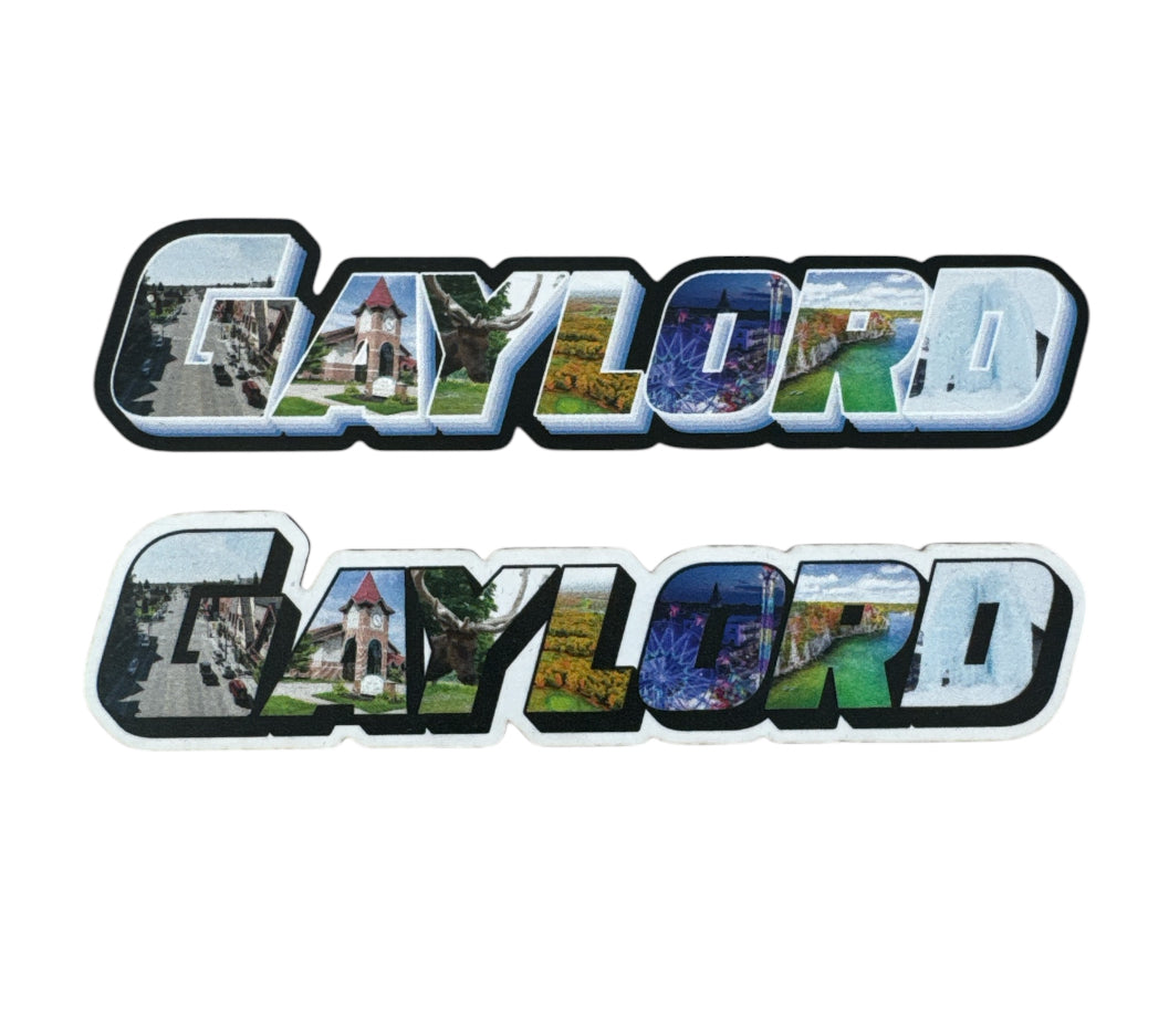 Celebrate the beauty of Gaylord, Michigan with this unique photo collage magnet! The town name "Gaylord" is creatively designed with iconic local landmarks and special spots inside each letter, capturing the essence of our hometown. Perfect for fridges, lockers, or any magnetic surface, this magnet is a great keepsake for locals and visitors alike!
