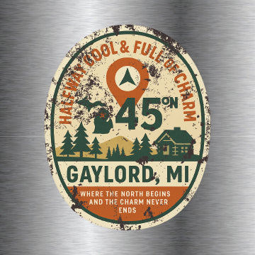Add some Northern Michigan charm to your fridge, locker, toolbox, or filing cabinet with this rugged little magnet that packs a whole lot of local pride. Featuring a weathered vintage look and a nod to the 45th parallel, this 2.3x3" magnet proudly reps Gaylord, MI—where the north begins and the charm never ends.