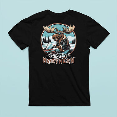 Unleash your wild side with the "Moose on the Loose" T-shirt from Nasty Northern! This tee is all about showing off your Northern pride with a splash of humor. Featuring our stylish, leather-jacket-wearing moose, this design brings some serious swagger to the back of your shirt, while the front rocks the Nasty Northern logo to let everyone know you're repping the North.