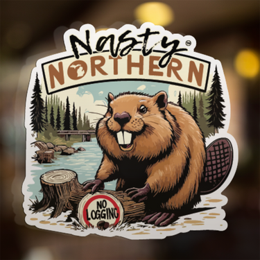 Meet the "Rogue Beaver", the true guardian of the North! This 5" Nasty Northern decal features our defiant little beaver taking a stand against deforestation, proudly displaying his "No Logging" sign like a true rebel. With rich colors and bold details, this design is perfect for those who love nature and a good laugh.