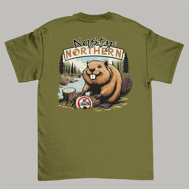 Featuring our mischievous Rogue Beaver graphic, this tee is a nod to the critters who keep our forests intact, one gnawed log at a time. The front sports the bold "Nasty Northern" logo, while the back showcases our rebellious beaver friend holding a "No Logging" sign. It's perfect for those who enjoy a good laugh and have a soft spot for nature.