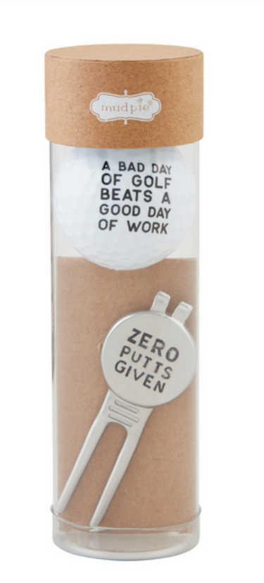 - 2-piece set includes a printed golf ball and a stamped metal marker