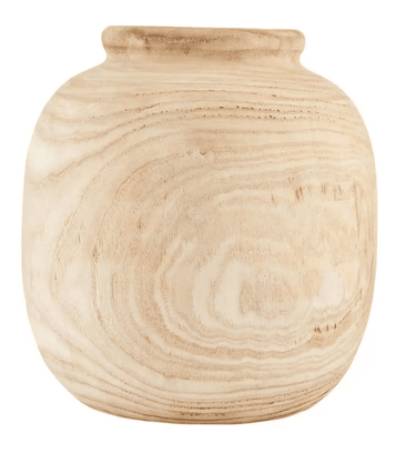 This large paulownia wood pot is a simple decor piece that can transform your space. The generous sized paulownia wood decorative pot measures 18 1/2" x 10" dia. This pot is intended to be filled with dried florals or plants only. We recommend our Pampas Grass or Lagrus grass.