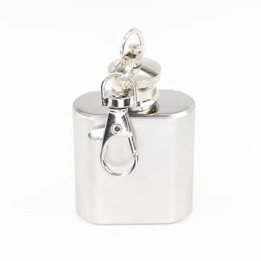 Silver Mini Flask - fun gift filler. Includes a silver keychain hook.