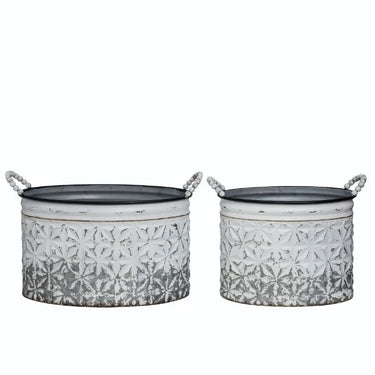 Whitewash Planters w/Drainage Hole