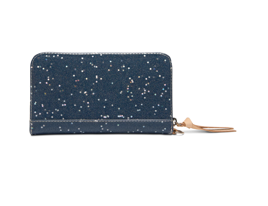 Function and versatility in the palm of your hand. Our new Essential Wallet is a streamlined,  large capacity wallet with tons of room for cards, cash, and receipts — plus a zippered center compartment for coins and keepsakes. We added a D-ring so you can easily clip it to any Consuela wristlet strap or anchor onto an inside lanyard for added security.