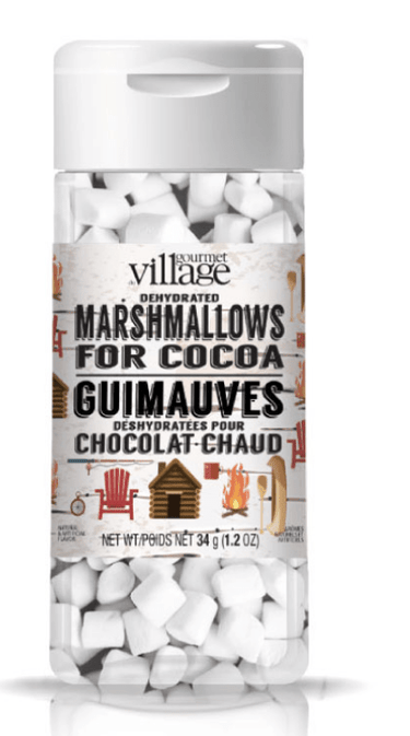 Mini Dehydrated Marshmallows. Easy to use recloseable, shaker top plastic container, enough to top off many mugs of Hot Chocolate. NOW in a BIGGER CONTAINER, with 30% more melt in the mouth dehydrated Marshmallows.