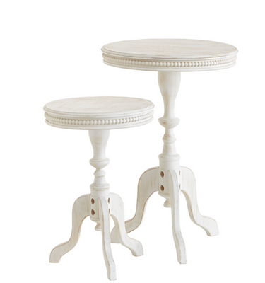 CLEARANCE- Distressed White Beaded Edge Side Table (Large)