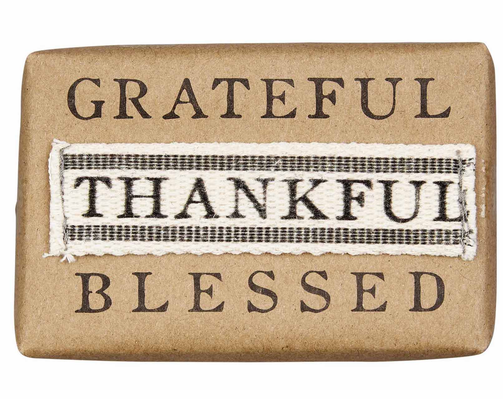 Make sure your home is ready for Fall guests with our Grateful Hand Soap. The hand soap features a harvest spice scent. The hand soap comes in embellished kraft wrap with the words "Grateful. Thankful. Blessed" on the front. This hand soap makes a great gift for Fall lovers.