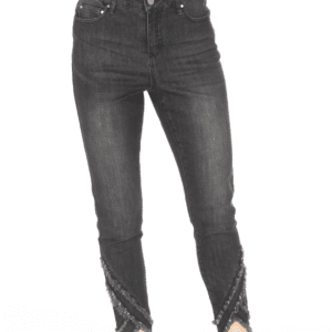 CLEARANCE- Liberty Double Layer Frayed Tulip Hem Skinny Ankle – Black