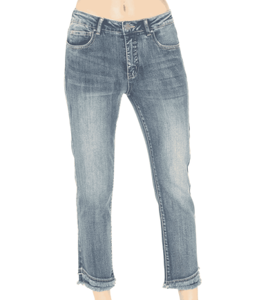 CLEARANCE- Olivia Pull-On Crop Frayed Jean - Indigo